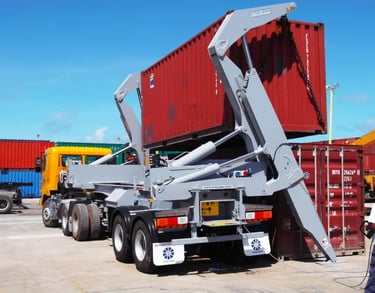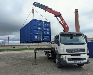 A Hiab Transporter is a crane-mounted truck. This is used for shipping container delivery when there is limited space for a side loader or tilt tray. Using a crane means the container is easily positioned at an angle or up on a raised area. It can also be used to place containers over a fence or other obstacles. A Hiab Transporter can deliver 10 foot, 20 foot or 40 foot containers.