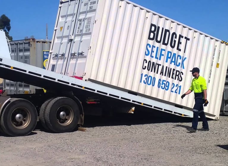 Our tilt tray shipping container delivery transporters come in a range of sizes depending on your purchased container. We commonly use a 20′ tilt tray transporter which allows us to transport one 20′ shipping container, or two 10′ shipping containers. We also have an optional 20′ trailer that attaches to the 20′ tilt tray transporter that allows for an additional 20′ shipping container.