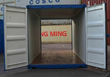 These Tunnel Containers are considered special build containers and non-standard, making them generally more expensive compared to standard double end door shipping containers. However, they are highly versatile, allowing entry from either end with fully lockable doors. They are commonly used for on-site storage, also known as self-storage, with a partition in the center that creates two separate 10ft storage units.